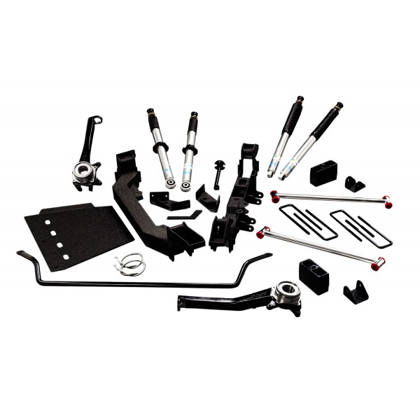 The RCD 6" Suspension System for the vehicles manufactured after September, 2003 Toyota Tundra 2WD / 4WD includes: CNC Machined Replacement Cast Iron Steering Knuckles for Precise Steering Geometry, Heavy Duty Two Piece Lower Sub-Frame Cross Members that are Precision Formed from 1/4" Thick Plate Steel Insuring Structural Strength and Durability, polished 304 Stainless Steel "Twin-Link" Anti-Compression Struts Provide Additional Support and Exceptional Support. Replacement Bilstein 5100 Series Coil-Over Front Shocks for Superior Handling and Ride Characteristics. RCD "Gator Black" Polyurethane Powder Coat Finish for Lasting Good Looks. Grade 8 Hardware for Reliability. Steel Braided Front Brake Lines for Correct Length and Increased Braking Performance. Replacement Heavy Duty Front Sway Bar for Added Performance and Stability. Custom Matched Bilstein 5100 Series Monotube Gas Pressure Front & Rear Shocks.