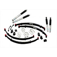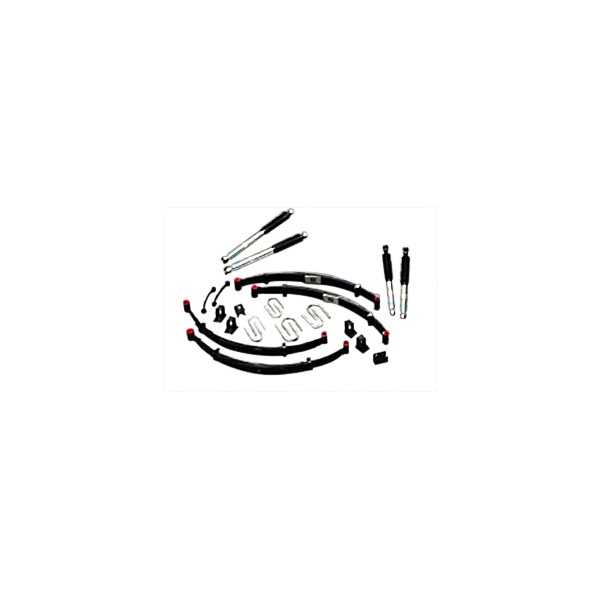 Front and rear leaf springs, engineered for maximum articulation and ride quality, precision tuned Bilstein 5100 Series shocks, adjustable front trac-bar, extended front sway bar links and extended bump stops. This kit combines the best of both on road driving and off road performance by increasing wheel travel and ground clearance while also correcting driveline geometry.