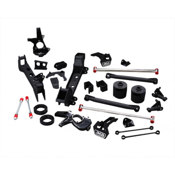 RCD lift kits for the 4WD Chevy/GMC SUV include CNC machined replacement cast iron steering knuckles, fully machined, T-6 billet aluminum axle spacers, heavy duty 2- piece lower sub-frame assembly and polished stainless steel "twin -link" anti-compression struts, CNC machined, zinc plated billet steel sway bar links with over-size urethane bushings and can be purchased with Bilstein shock absorbers or without shocks giving you the flexibility to choose what fits into your budget. Also availble for Air Ride suspension.